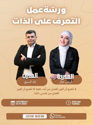 Led by Coach Eyad Al-Sapti and Coach Eman Ghazal, this session combines interactive discussions, reflective exercises, and personal development tools that empower you to grow with clarity and confidence.